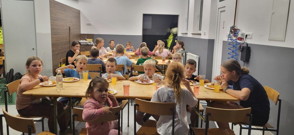 Ob vrnitvi v naš domači kraj (gasilski dom) so si otroci najprej pripravili ležišča, nato pa je že sledila večerja po domače. Ker so otroci imeli še kar nekaj energije po celotnem dnevu aktivnosti, smo se v čisti temi odpravili na nočni pohod z lučkami. Dan pa smo zaključili še s kino večerom. Izleta se je udeležilo 34 otrok pod vodstvom sedmih mentorjev